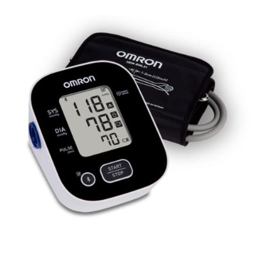 The Omron 3 Series Wireless Upper Arm Blood Pressure Monitor delivers clinically accurate and consistent readings with the ease of home monitoring. Featuring Omron Advanced Accuracy technology, it measures five times more data points to reduce errors caused by breathing or movement. This device not only records blood pressure but also detects pulse rate and irregular heartbeats for comprehensive monitoring. With 14 onboard readings and unlimited app storage via the free Omron Connect app, users can track trends, gain valuable health insights, and share results with doctors or caregivers. The wide-range contoured D-ring cuff comfortably fits arms 9 - 17 Inches, making it a reliable choice for everyday health management. Take control of the heart health today—order now and monitor with confidence!